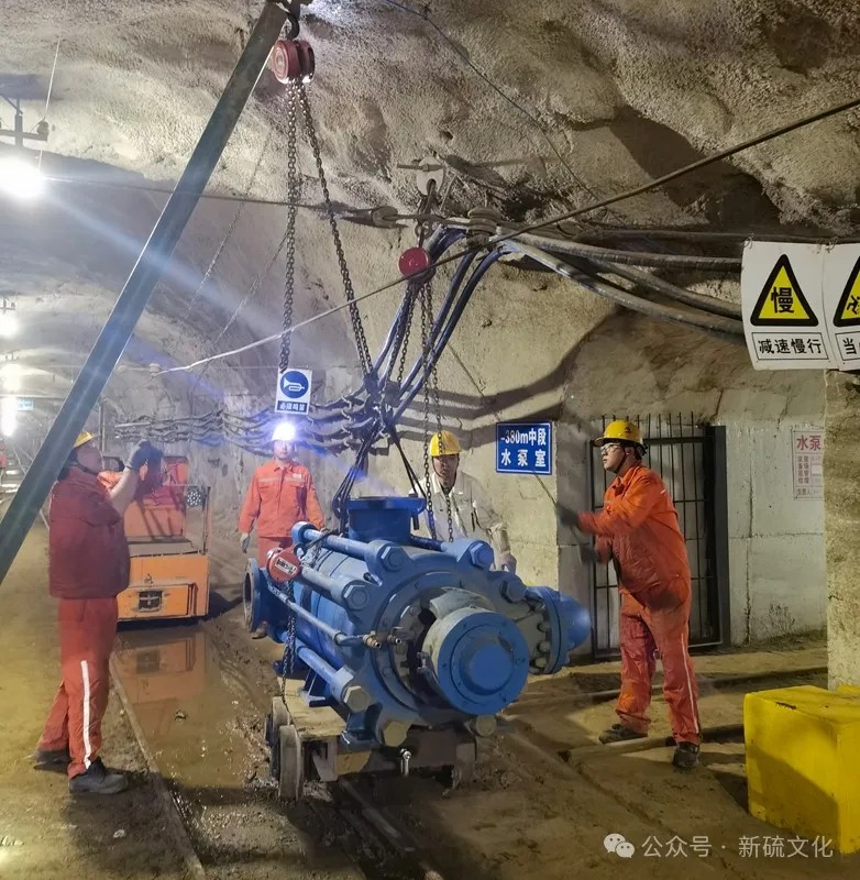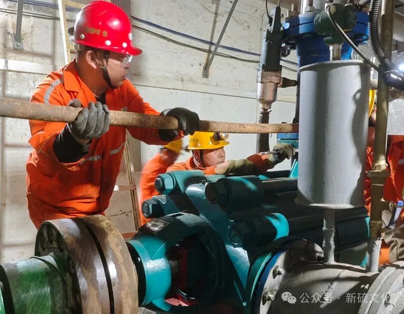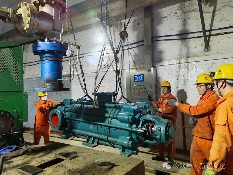 近日,运输工区组织东翼维修班更换负380泵房3号水泵,严阵以待即将到来的汛期。